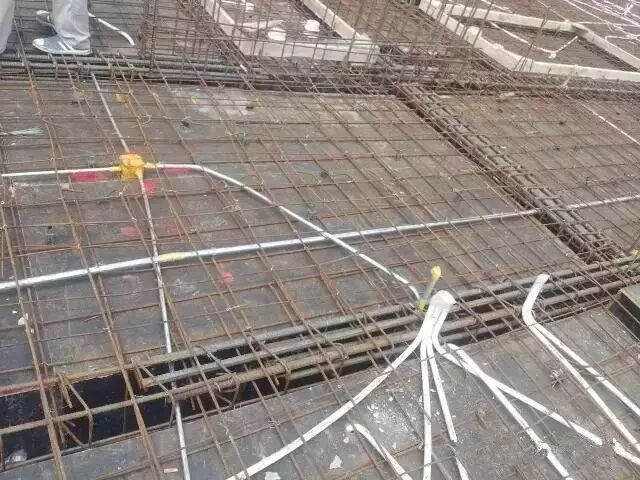 ② 问题:并管,在分户配电箱、多媒体相处和管线密集处容易出现多根PVC管并列不管影响混凝土的浇筑和板的质量,导致以后板漏水;因此需要留一定的间距。